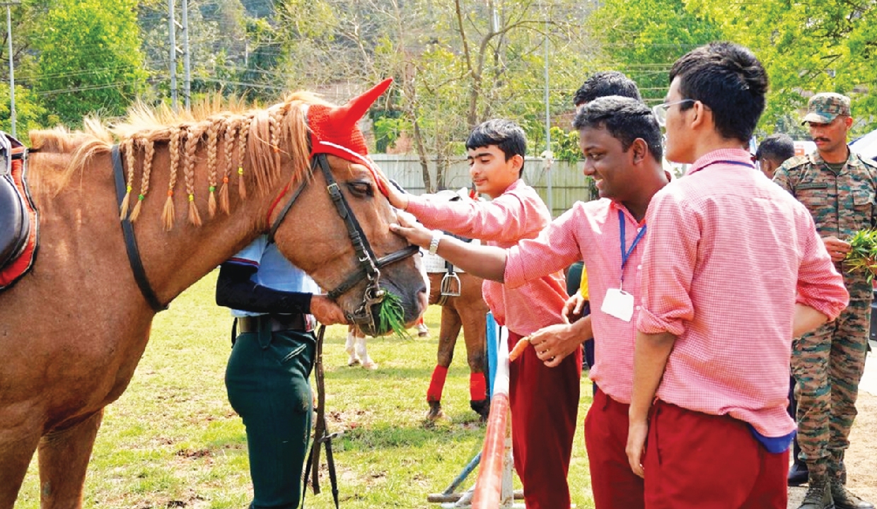 The programme brought together specially-abled children from Asha School, Narangi Military Station, providing them an opportunity to experience the therapeutic and emotional benefits of equine interaction in a safe and encouraging environment.