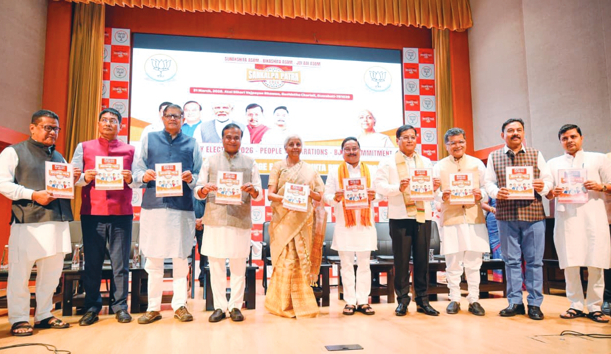 Union Finance Minister Nirmala Sitharaman on Tuesday released the BJP’s manifesto for Assam Assembly polls, promising protection of land, heritage and dignity of indigenous people and `5 lakh crore infrastructure investment.
