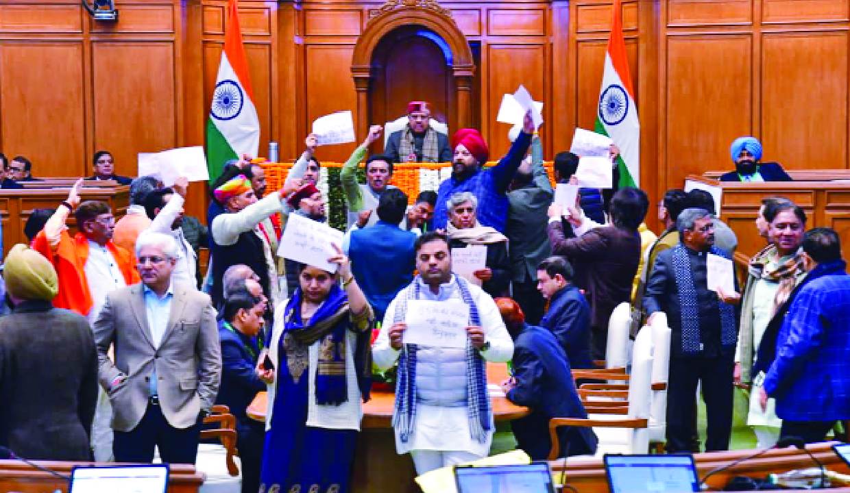 The Delhi Assembly sitting on Wednesday was adjourned for the day after BJP MLAs raised slogans against Leader of Opposition Atishi, accusing her of “disrespecting” Sikh Guru Tegh Bahadur, and repeatedly trooped in the well of the House over the matter.