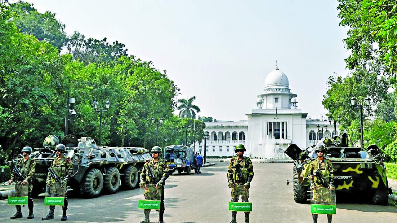 The three former police officers who received the capital punishment and assistant commissioner Imrul were tried in absentia as the tribunal earlier declared them as fugitives while the others faced the trial in person. Bangladesh’s army personnel stand guard at the International Crimes Tribunals premises in Dhaka
