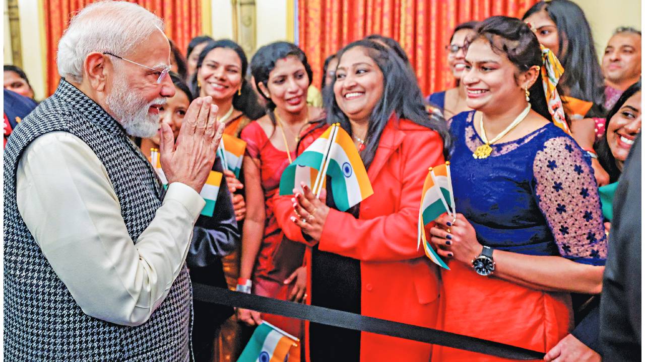 Narendra Modi was greeted with extraordinary enthusiasm by the Indian community in Tel Aviv on Wednesday as he commenced his two-day state visit to Israel. Braving tight security and winter chill, members of the diaspora gathered in large numbers outside the Prime Minister’s hotel, waving the Tricolour and raising patriotic slogans.