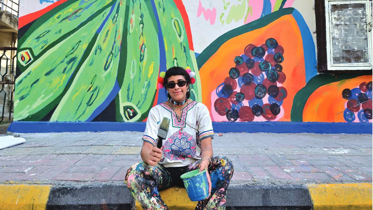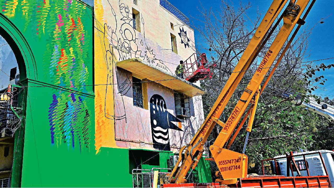 But that heavy silence has finally broken. Today, it is replaced by a permanent, defiant explosion of colour. It is like a never-ending Holi painted onto the very skin of the city. It is a place where the festival of colours refuses to wait for a date on the calendar. It lives there, every single day. Strolling these lanes feels like wandering into the city’s private diary. What was a quiet government estate has blossomed into India’s first open-air museum. It is a gift to all, showing every ordinary building has a story. These walls carry the street’s lively spirit. With Lodhi Art District marking 10 years alongside St+art India Foundation and Asian Paints, the colony now feels like home-art for one and all. Here, the city finally finds its voice. That wall’s turned into a huge, colourful garden door-where two worlds bloom together. High on the scaffolding, Artist Suso33 from Madrid paints with a dancer’s grace. Right beside him, his wife Annabelle is busy capturing the whole transformation.