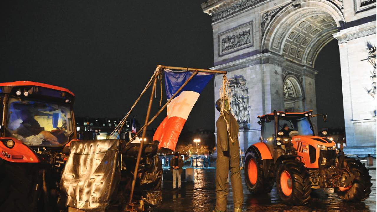 The Interior Ministry said about 20 tractors were in the Paris city centre, some at the Arc de Triomphe monument and others in the Eiffel Tower neighbourhood, despite a ban issued by authorities. Convoys of tractors “bypassed and forced their way,” the ministry said.