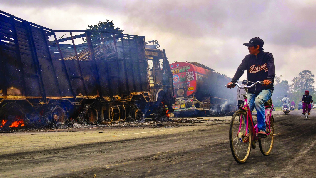 As the information about the tragic death of children spread, locals gathered in large numbers to protest in Bishnupur. They blocked roads, burned tyres and set fire to at least three trucks near a petrol pump in Moirang area.