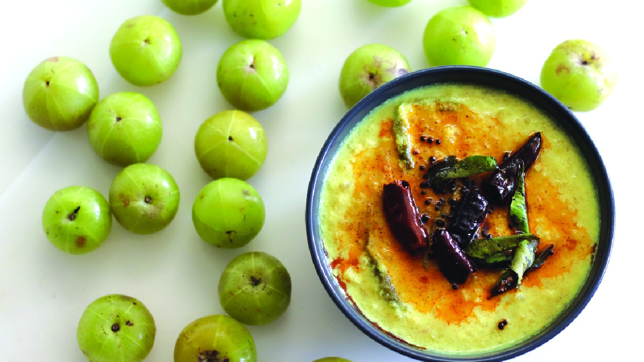 Amalaki Ekadashi is observed on the eleventh day (Ekadashi) of the waxing moon in the month of Phalguna and is dedicated to the worship of Vishnu, with special reverence offered to the amla or Indian gooseberry tree (amalaki). Central to the cuisine, therefore, is amla, a fruit revered not only for its sacred association but also for its immunity enhancing properties. Fresh amla are washed, deseeded, and finely chopped or grated. Amla Chutney is prepared by pounding the fruit with rock salt and mild green chilli, creating a sharp and invigorating accompaniment that stimulates digestion. It is often taken with the first meal of the day, awakening the palate and signalling a shift toward cleansing. Amla Murabba, prepared by slowly cooking whole fruits in a light jaggery syrup, offers a gentler sweetness. Consumed in small quantities, it is valued not only for taste but for its vitamin rich properties, and it is often eaten later in the day, when the body seeks a restorative repast without heaviness. Amla infused Buttermilk completes the Ekadashi table. Dried amla powder is stirred into fresh buttermilk with roasted cumin and rock salt, creating a beverage that is cooling, restorative, and light. Taken in the afternoon, it supports digestion and reinforces the theme of internal purification. To give the day a complete savoury centre, some households prepare Amla Samak Pulao, a dish that integrates the fruit without overpowering the palate. Barnyard millet is cooked fluffy in ghee, and finely chopped amla is sauteed briefly with cumin and rock salt. The result is mildly tart, clean, and surprisingly refreshing, and is often eaten after the main worship as the day's primary solid meal.