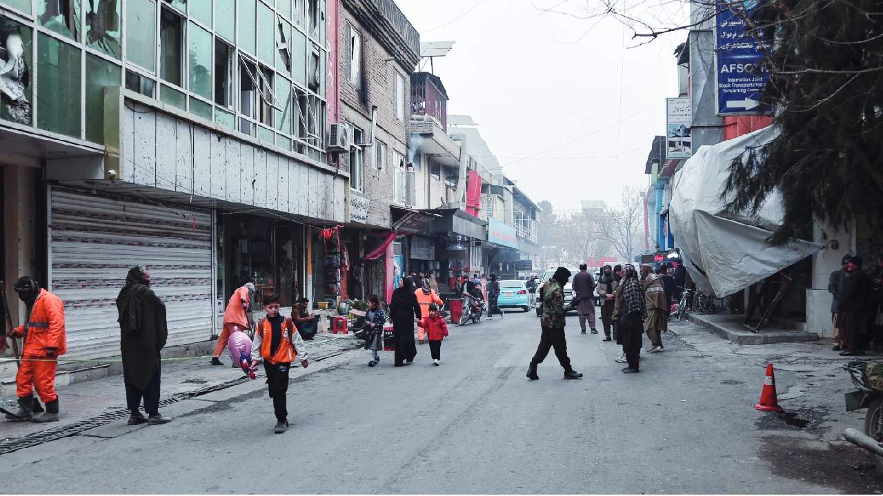 He said that one Chinese national was killed and five others were wounded. He added that China is urging Afghan authorities “to make every effort to treat the injured, further take effective measures to protect the safety of Chinese nationals (and) projects,” and to find and punish the perpetrators. The attack happened at a Chinese restaurant in the Shahr-e-Naw district in the city, according to police spokesperson Khalid Zadran. Workers cleaning the scene as Taliban police secure the area after an explosion at a Chinese restaurant.