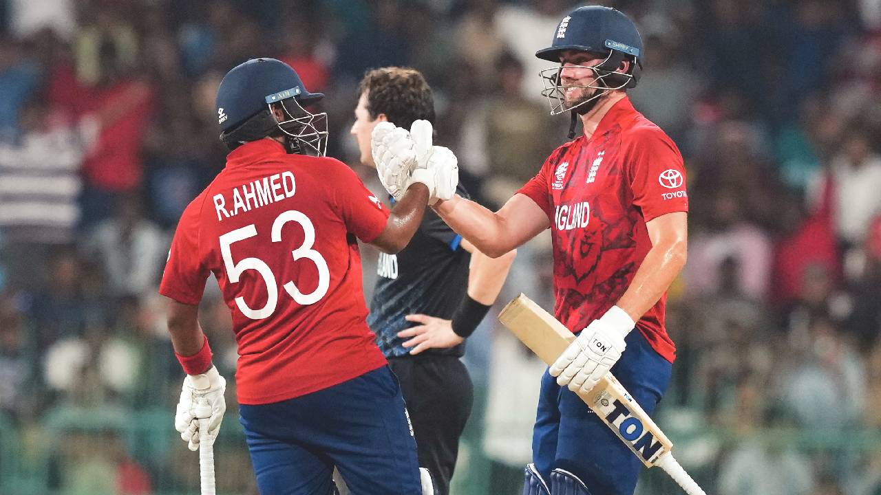 At 58 for four in the ninth over, England were in a spot of bother, but Tom Banton and Sam Curran kept them in the game, even as New Zealand employed their spinners from both ends. However, after the duo had added 42 runs for the fifth wicket, the Kiwis got a breakthrough with Rachin Ravindra getting the better of Curran and then Banton to put New Zealand ahead. But Jacks and Ahmed had other ideas.