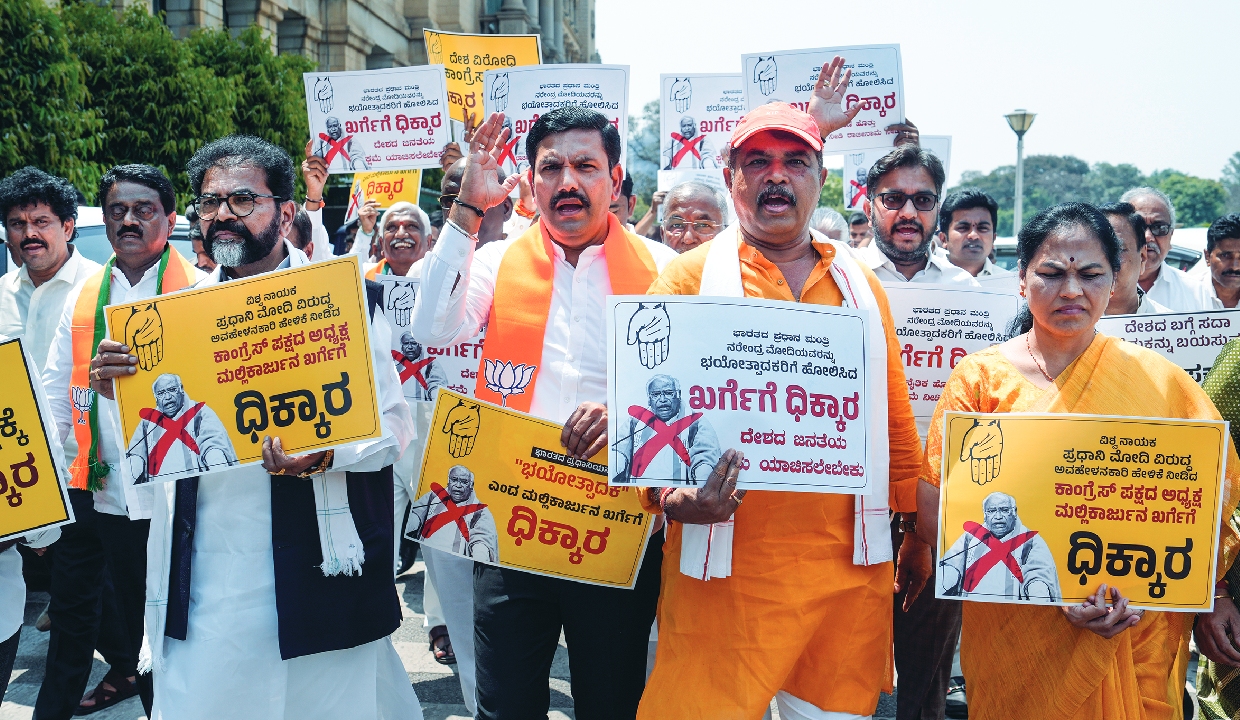 Karnataka BJP protests against Kharge’s ‘terrorist’ remark on PM