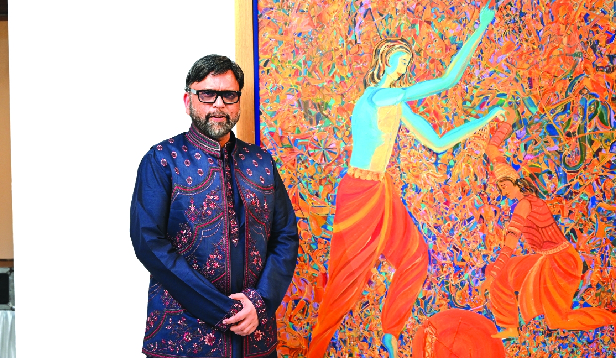 “Wherever there is beauty, there is an element of divinity; as a legacy, I want to be happy because while problems in life must be solved, happiness is the only thing worth keeping.” Spoken with a quiet focus by Jayant K, these words anchor ‘Journey with the Divine Flow’ at the Travancore Palace Gallery. Stepping into this space involves witnessing the instinctive vision of a seeker who uncovers the sacred within a petal’s curve or a warrior’s stride. Jayant K, India’s Ambassador to Spain and Andorra, bypasses the formulaic rules of a trained painter. He builds a visual philosophy where internal intensity carries greater weight than academic precision.