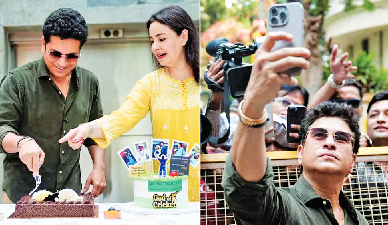 Legendary Indian cricketer Sachin Tendulkar celebrated his 53rd birthday in Mumbai on Friday in the presence of fans across age groups at his residence with his wife Anjali in company.