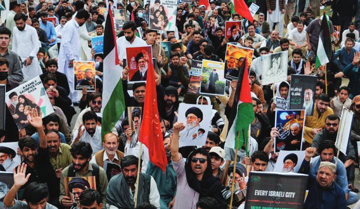 Amid heavy police presence, about 300 protesters staged a sit-in in Islamabad, holding posters of Khamenei and chanting “Death to America” and “Death to Israel.” Islamabad police had parked shipping containers on roads leading to the US Embassy in Islamabad to prevent any potential escalation.