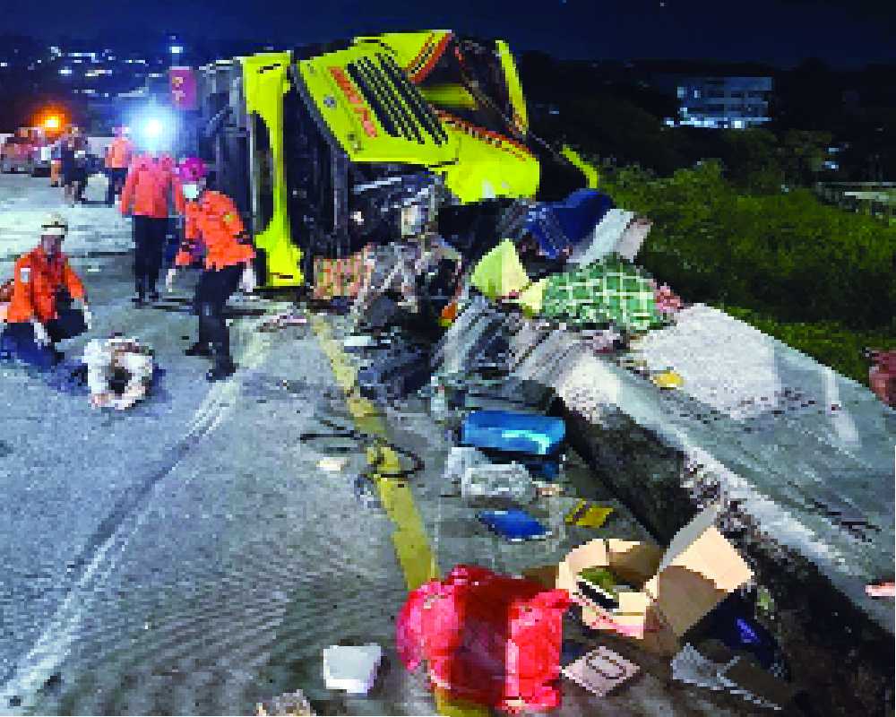 A passenger bus crash killed at least 16 people on Indonesia’s main island of Java just after midnight on Monday, officials said. The bus carrying 34 people lost control on a toll road and struck a concrete barrier before rolling onto its side, said Budiono, a search and rescue agency chief who goes by single name like many Indonesians. The inter-province bus was traveling from the capital Jakarta to the country’s ancient royal city of Yogyakarta when it overturned while entering a curved exit ramp at the Krapyak toll way in Central Java’s Semarang city, he said. “The forceful impact threw several passengers and left them trapped against the bus body,” Budiono said.