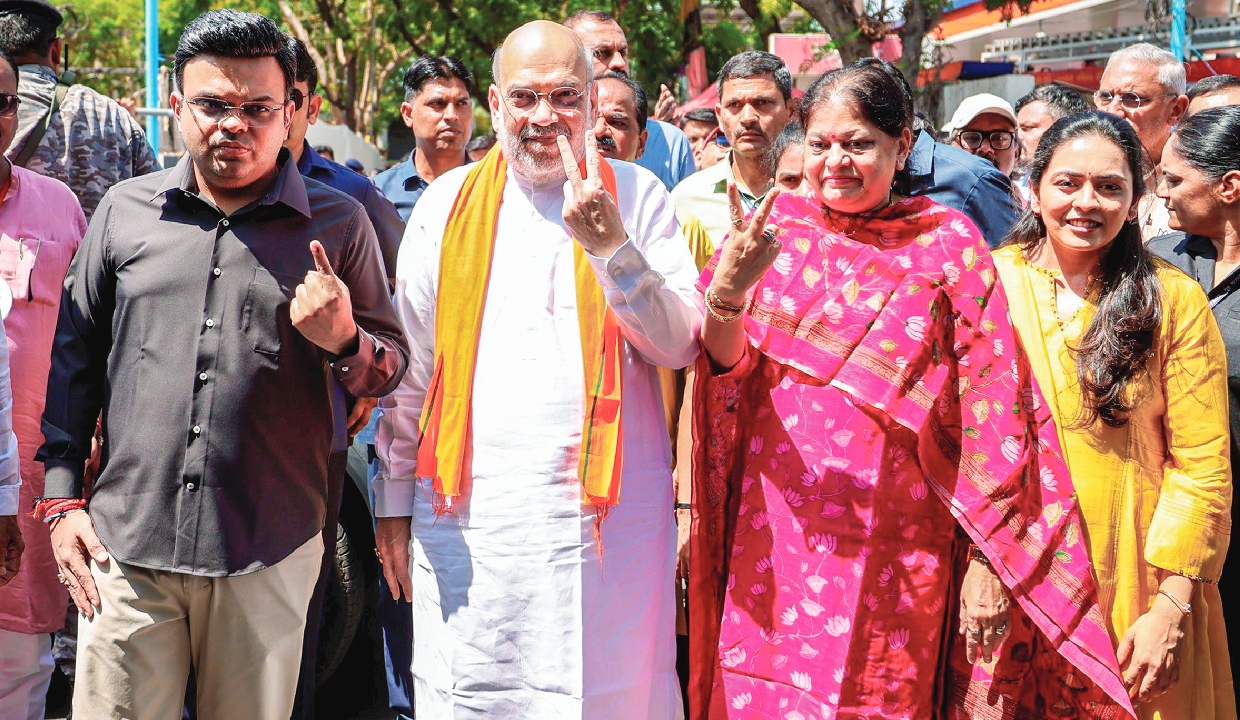 Ahmedabad: Union Home Minister Amit Shah cast his vote with family members at a polling booth in Narayanpura, Ahmedabad, during Gujarat’s local body elections on Saturday.