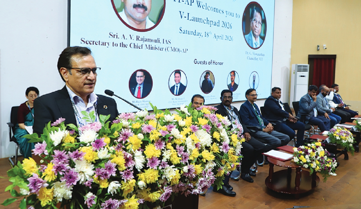 With the aim of promoting innovation and start-up culture, V-Launch Pad 2026 was organised with great grandeur at VIT-AP University. The event, jointly organized by the VIT-AP School of Business and the Innovation, Incubation and Entrepreneurship Cell (IIEC), served as a platform for students, faculty, and industry leaders. The guests inaugurated stalls showcasing creative and innovative projects set up at the Student Activity Center. The guests for the event—Rajeev Sharma (CEO, AgVysor Innovations LLP), Sandal Kotawala (CEO, Alfaleus Technology Pvt. Ltd.), and Krishnan G (CEO, Ratan Tata Innovation Hub, Vijayawada)— Chandrasekhar Kupperi –Founder of ANOVA Corporate Services- addressed the students. In their speeches, they emphasised the importance of entrepreneurial thinking focused on problem-solving. They expressed that research should not remain limited to papers but should evolve into commercially viable products. They also praised the role of innovation hubs and incubation centers in the growth of start-ups.