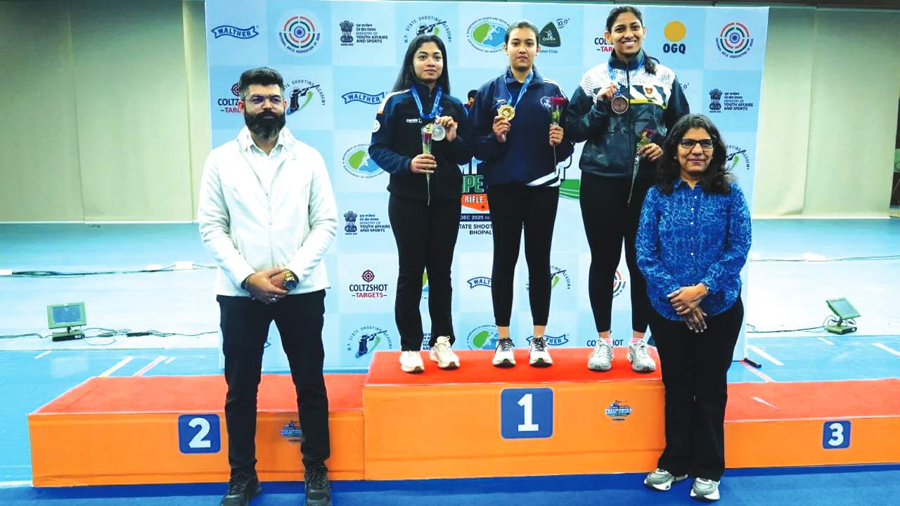 In junior women’s 50m rifle 3P, Army’s Rituparna Deshmukh came up with a controlled performance in the final to claim gold with 458.6. She rose from fourth position in qualification, where she shot 584, to peak in the final. Haryana’s Nischal mounted a strong challenge but finished just 0.5 points behind to take the silver with 458.1. Karnataka’s Anushka Thokur secured bronze with 447.6. Shrivalli finished fourth in the with 437.2, followed by Ramita with 424.9 and Tilottama with 414.3. In the senior women’s 50m rifle 3P team event, Rajasthan (Manini Kaushik, Sweety Choudhary and Monika Jakhar) clinched gold with an aggregate score of 1751.