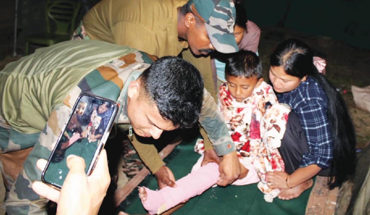 At approximately 5 pm, a distressed local family reached the Company Operating Base (COB) at Hanuman Top, in Imphal East District, seeking urgent help. Acting promptly, troops initiated first aid under the guidance of the Regimental Medical Officer (RMO). The wound was carefully treated, and the affected limb was immobilised to prevent the spread of venom.