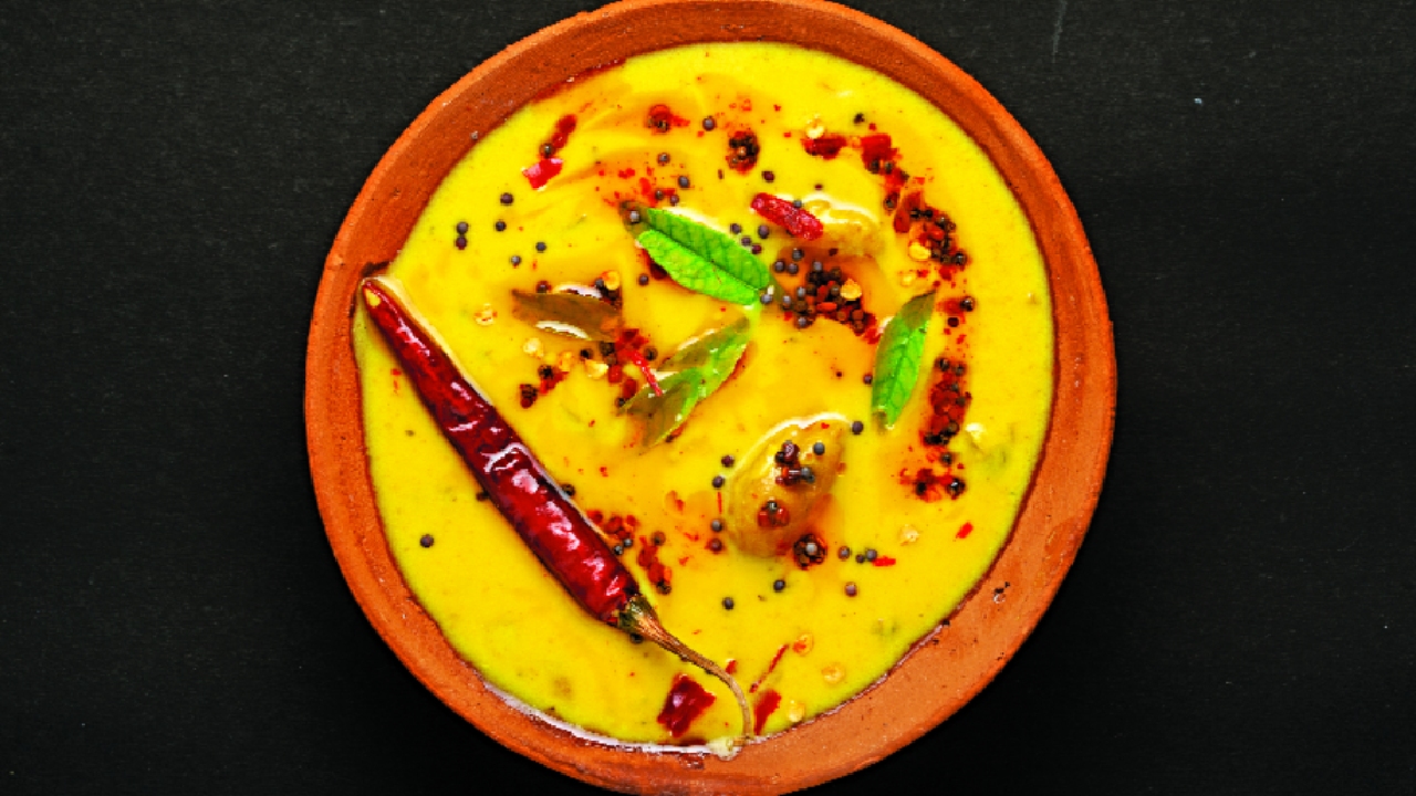 Within this framework, more structured savouries introduce variation in both texture and technique. Dudhi muthia, prepared from grated bottle gourd and gram flour, is steamed and lightly sauteed to achieve a soft yet structured consistency, while patra, made from colocasia leaves layered with gram flour paste, is rolled, steamed, and sliced before gentle tempering. Paneer sabzi, where fresh cottage cheese is cooked with tomatoes and mild spices, offers protein and depth without heaviness, while kadhi, prepared from yogurt and gram flour, is simmered slowly and tempered lightly to ensure both comfort and digestibility. Alongside these, dishes such as gatte ki sabzi bring gram flour dumplings into a lightly spiced gravy, demonstrating how even richer preparations remain aligned with restraint when handled with care.