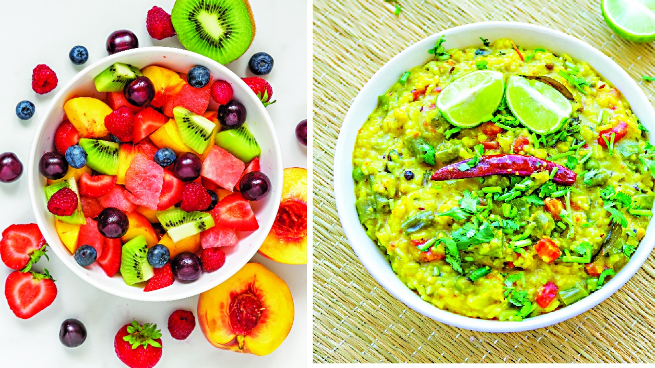 Fruit based preparations further reinforce the principle of natural nourishment, where seasonal fruits such as bananas, papaya, and apples are consumed fresh or combined into fruit chaat with a light seasoning of rock salt and pepper. Dry fruits such as almonds, raisins, and cashews are also included, either consumed on their own or incorporated into sweets, ensuring sustained energy while remaining aligned with dietary restraint.