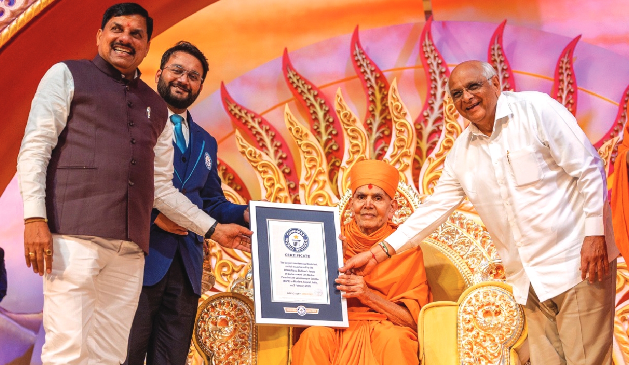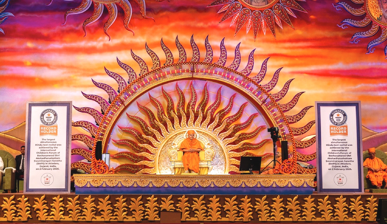 In an age where roots are fading, these young minds quietly hold on to them. Not only learning the Sanskrit language, but also reviving an entire culture. With verses on their lips and values in their lives, BAPS children are quietly taking India’s timeless wisdom to the world. In Vadodara, these young voices rose in unison and quietly entered the annals of the Guinness World Records. Through an extraordinary display of Sanskrit recitation and memorisation, these children transformed devotion into distinction. What echoed that day was not merely sound, but civilisation itself-ancient wisdom flowing through disciplined minds, turning a sacred tradition into a moment of global recognition