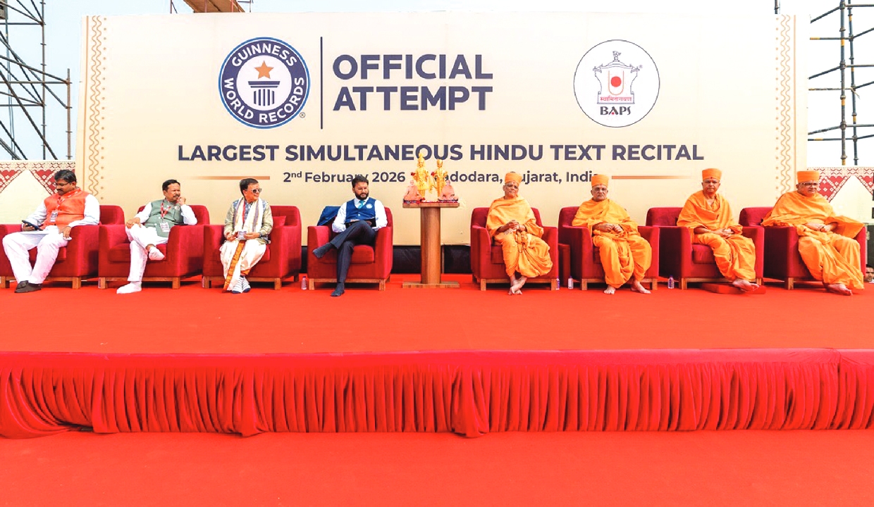 As if history itself sought to mark the occasion splendidly, the sun rose on February 2, 2026, with quiet grandeur. On the sacred 92nd birth anniversary of Mahant Swami Maharaj, 12,723 young scholars gathered in Vadodara and, in one unified voice, recited Sanskrit verses from memory, creating a Guinness World Record for the largest simultaneous Hindu text recital.