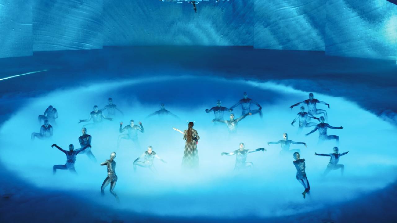 The 2½-hour ceremony opened with a whimsical tribute to Italian lyric opera, with the stage director rousing not only the closing ceremony cast, including Achille Lauro, but also long-dormant opera characters tucked away in crates within the amphitheater’s tunnels. On stage, Madama Butterfly in a bright pink and green costume and Aida in golden tiers were unpacked from mirrored crates while 17th century musicians played the joyous “Libiamo ne’ lieti calici” from La Traviata, a nod to the Arena’s long history as the venue for a summer opera festival.