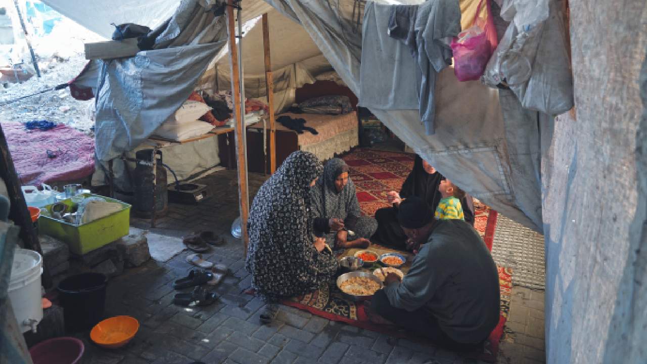 In September, Palestinian attackers opened fire at a bus stop during the morning rush hour in Jerusalem, killing six people and wounding another 12, according to Israeli officials. Amal Matar siting with her family to eat in their tent in the Al-Shati camp, northern Gaza Strip.
