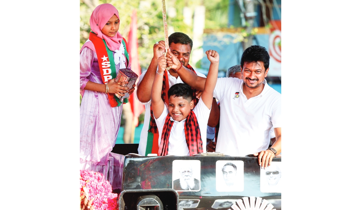 Udhayanidhi, campaigning for DMK’s Mannargudi candidate and Industries Minister TRB Rajaa, sought to frame the 2026 Assembly election as a battle between “slaves and self-respect”.