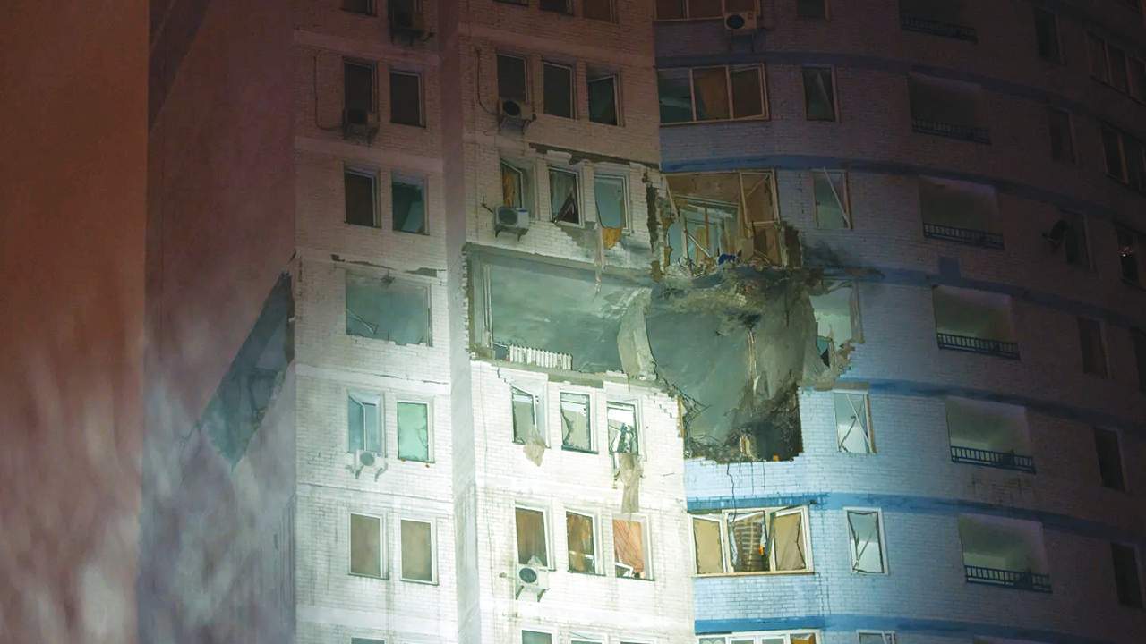 It did not immediately specify the targets or damage. Overnight into Saturday, Russia struck Ukraine with 121 drones and one Iskander-M ballistic missile, according to the Ukrainian air force. A residential building is damaged after a Russian air strike during a heavy snow storm in Kyiv, Ukraine.