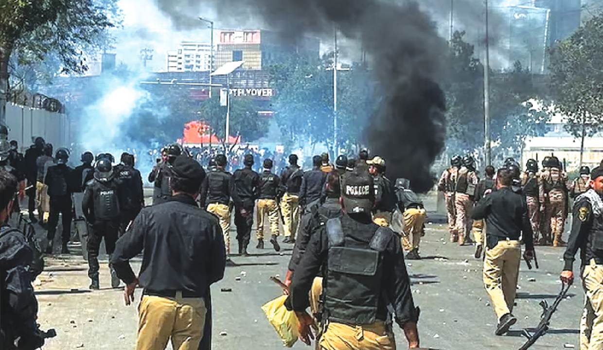 Edhi Information confirmed that several injured were shifted to Civil Hospital after reports of firing. A heavy police contingent remained deployed on MT Khan Road. Police fired tear gas shells to disperse the crowd, while protesters responded with stone-throwing, according to reports. Traffic police said routes leading to Numaish Chowrangi had been closed and alternative routes were being provided to motorists.