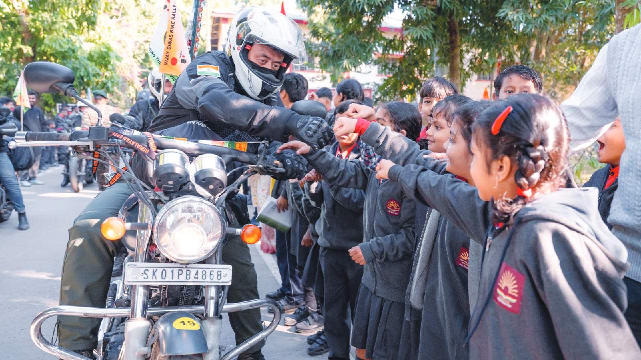 A contingent of forty motivated civilian motorcyclists from Sikkim undertook this commemorative jou-rney, symbolising the enduring bond between the Armed Forces and the citizens they serve. Flagged off from Gangtok on December 16, 2025, the rally traversed a demanding and symbolic route across the Eastern Theatre, passing through Sikkim, North Bengal, Assam, Arunachal Pradesh and Meghalaya.
