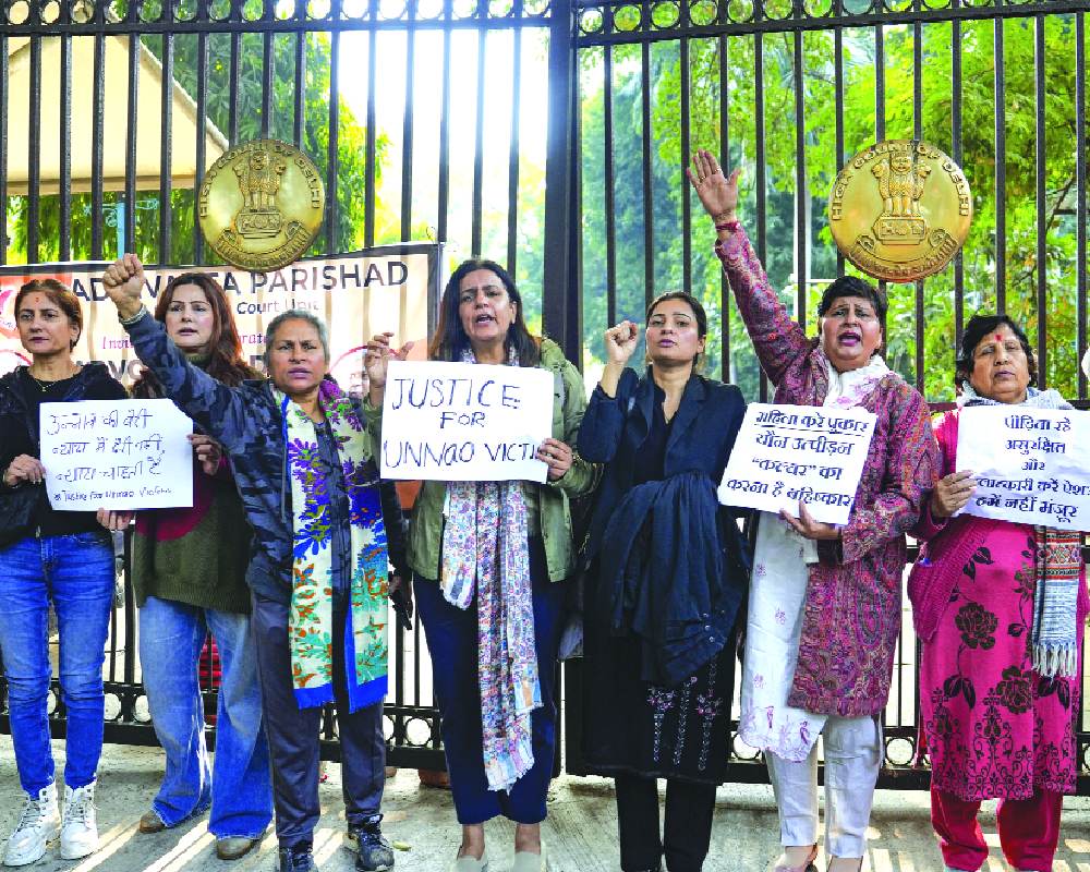 Activists from the All-India Democratic Women’s Association, along with activist Yogita Bhayana and the survivor’s mother, held a protest outside the court, demanding cancellation of the bail of Sengar, an expelled BJP MLA.
