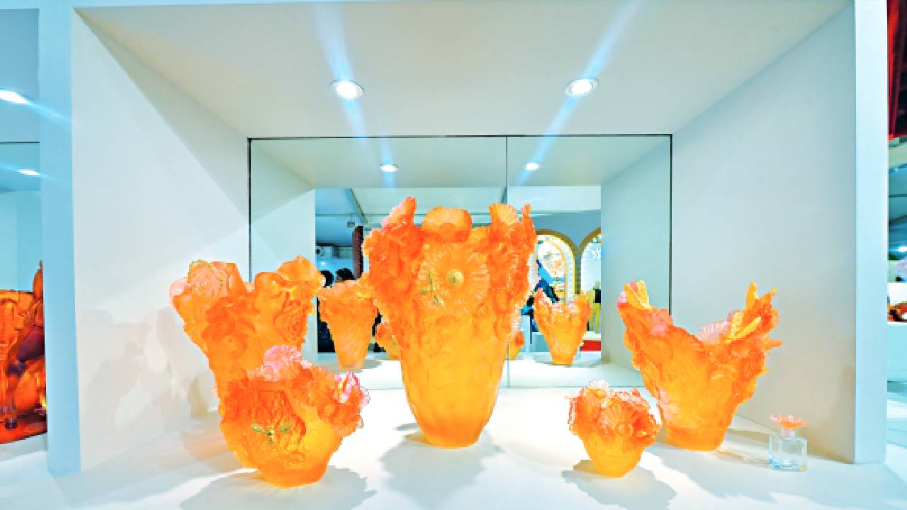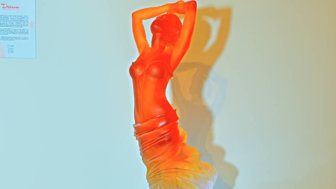 There are about 13 French Houses there showing how to make old-school methods look modern. Nathalie Borderie is another perfect example. She’s a French glass artist who somehow treats glass like it’s a piece of fabric, melting it into metal to make sculptures that look like magic. No two pieces are ever the same because the effort is immense. It takes months of diamond-cutting and a seriously long time to get every tiny detail to sit right. You can actually see the hours of work in how the textures shift when you walk past. Then there is Maison Daum. They use an ancient technique to trap colour right inside the crystal so it looks like it is actually breathing. It adds this sculptural lighting to a room where the piece glows from the inside, even after the lights are turned off. For walls and floors,