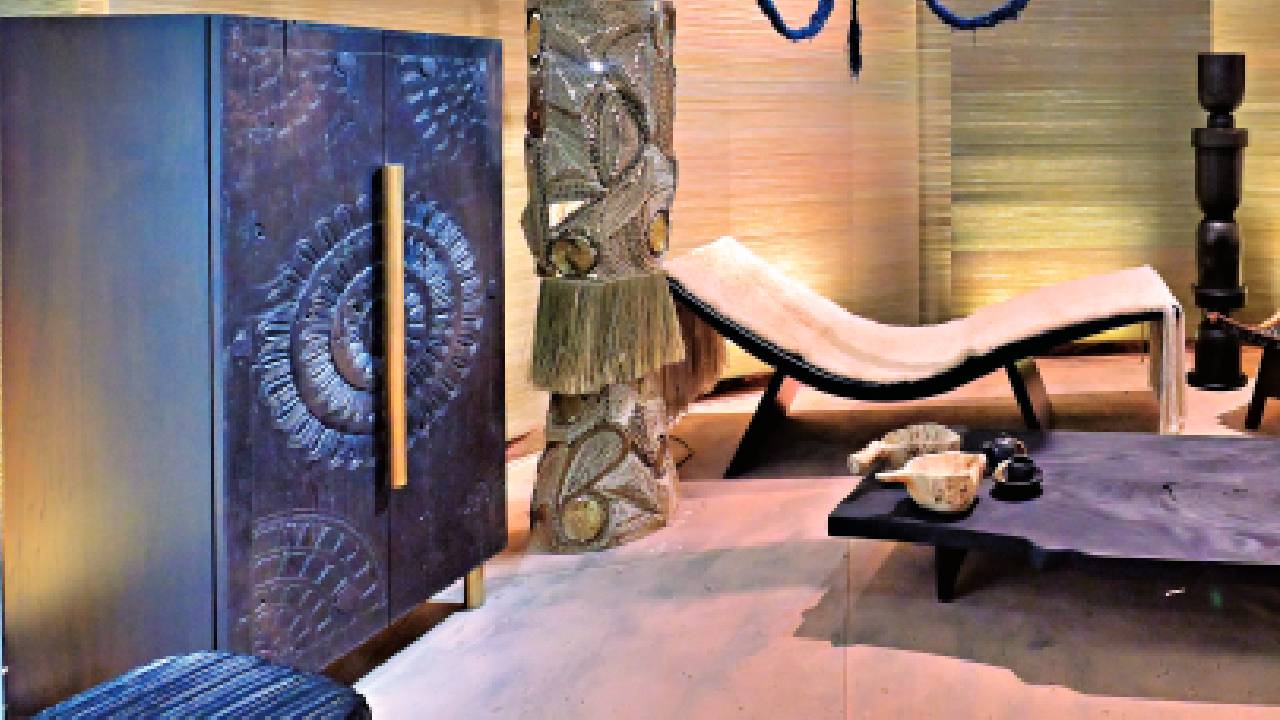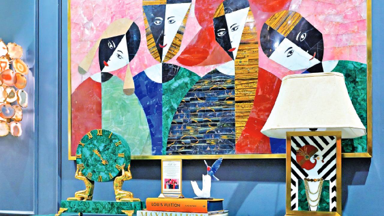 Casamance and MISIA bring high-end fabrics that feel like an emotional interlude. Nattiot creates sustainable rugs for families. These textiles provide the tactile comfort that balances out harder surfaces like stone and glass. Even the tech is high art. Waterfall Audio makes speakers out of handcrafted glass. Even the very bones of our homes are becoming precious. Munjal Jhaveri over at Bespoke Home Jewels is doing something bold by using gemstones like malachite and lapis lazuli as architectural pieces. She describes a fireplace that took 10 people working for 50 days straight to finish. They used a lost-wax casting technique for silver and gold accents on rare Makrana marble. It captures something ancient yet futuristic all at once — that’s why it pairs so seamlessly with Vibhor Sogani’s light installations. In his piece A Dance of Balance, gleaming stainless steel orbs sway in quiet harmony, mirroring the deeper equilibrium we all quietly seek in our lives.